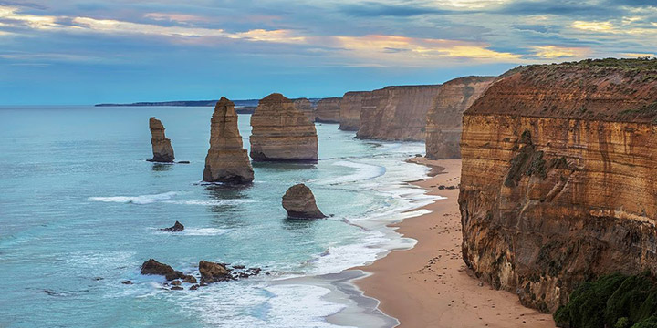 Explore the legendary Great Ocean Road with a rental car on an Australia vacation. This 150-mile stretch of highway has breathtaking ocean stones that tower on the shoreline (called The Apostles), wildlife, surf breaks, rainforest, village life, and waterfalls. Start your travels with two nights in Melbourne. The city has perfect Victorian architecture, celebrated cuisine, an array of spectator sports, and outdoor activities you can dive into. Experience the café culture on a locally, guided tour. Your next night is spent in Apollo Bay, at the Otway foothills—see petrified rainforests, tumbling with waterfalls.