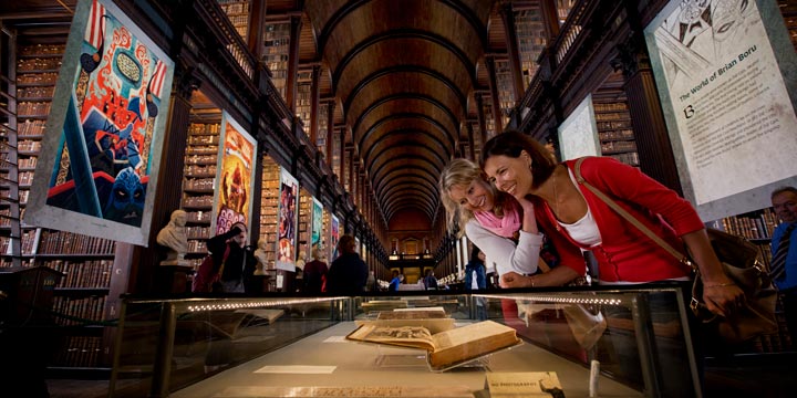 Time spent in Dublin would not be complete without a visit to Trinity College. Founded in 1592 by Queen Elizabeth 1st, it is one of the oldest universities in the British Isles, and the very oldest in Ireland. Standing on a self contained site in the very heart of Dublin, the College itself covers some 35 acres of cobbled squares and green spaces surrounded by buildings which represent the accumulated architectural riches of nearly three centuries. Although Trinity offers much of interest to the visitor, the crown jewel is without doubt the Book of Kells. The Book is an 'illuminated manuscript', globally celebrated for its lavish decoration. The manuscript contains the four Gospels in Latin based on a Vulgate text, written on vellum (prepared calfskin), in a bold and expert version of the script known as 'insular majuscule'. Written in the 9th century, it has been on display in the Old Library at Trinity College Dublin from the mid-19th century, and attracts over 500,000 visitors a year.