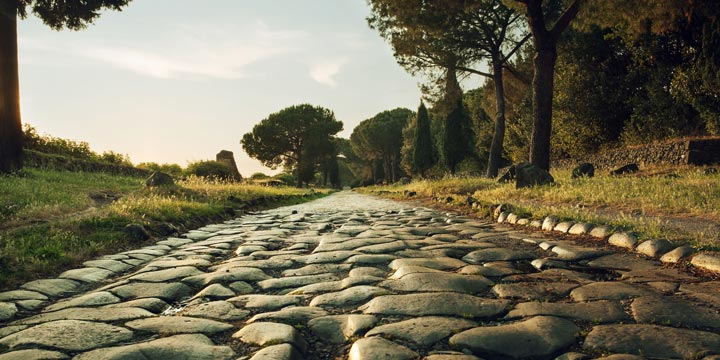 Via Sacra is the Roman Forum's main thoroughfare and it traverses the site from northwest to southeast. In ancient times, a victorious general would be honoured with a dramatic procession (known as the Triumph) up Via Sacra to the Temple of Jupiter Capitolinus on the Capitoline Hill.
