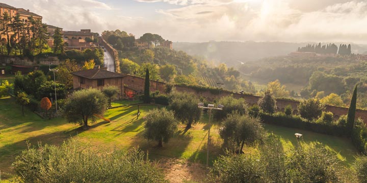 Siena was built around the Piazza del Campo and conceived of as a work of art that seamlessly blends with the landscape. Siena is also the perfect base to go wine and cheese tasting, bicycling through vineyards, orchards, past country farms, and back into town. Heavenly views abound in Siena.